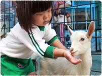 ・園内のプールに児童用のヨットを浮かべ、乗船する